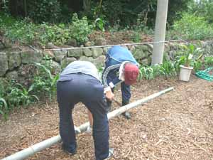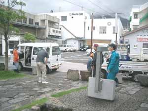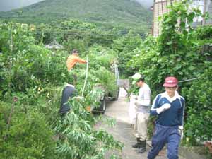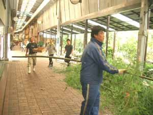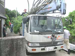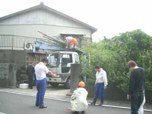 切った竹をトラックへ