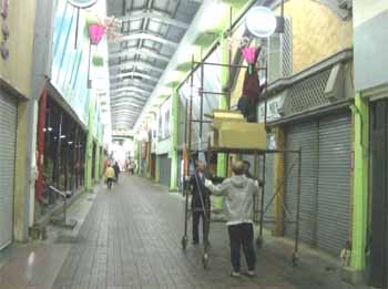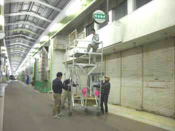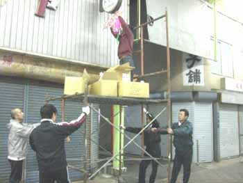 春のまち飾りの撤去作業