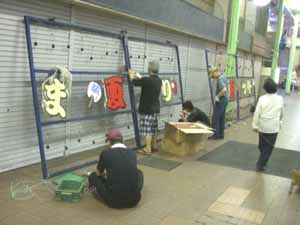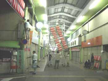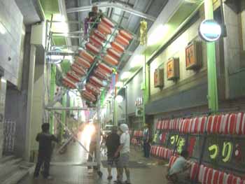 ちょうちん飾り作業