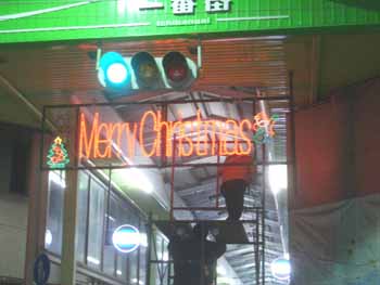 まち飾り取り付け作業