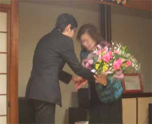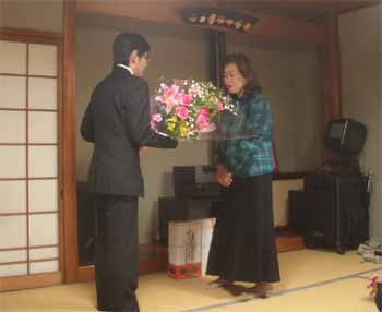 | 今期で退職される森崎@事務員さんへ感謝の花束 | |